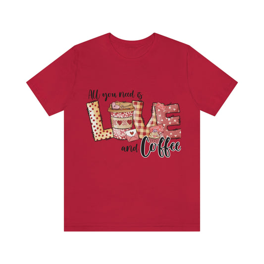 Valentine Day Shirt, Love and Coffee Unisex Jersey Short Sleeve Tee