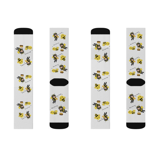 Cute Socks with Be Kind, Be Happy Bees Print, Inspirational Socks